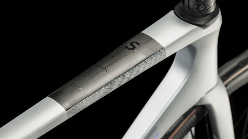 Ab einer bestimmten Geschwindigkeit ist es nicht mehr am Fahrer, ob noch ein paar Millisekunden schneller drin sind, sondern am Bike. Deshalb hat CUBE sich bei der Entwicklung des Agree C:62 von ihren High-End-Rennrad- und Zeitfahr-Rahmen inspirieren lassen. Das Ergebnis ist ebenso aerodynamisch wie ästhetisch ansprechend – ein Allround-Chassis aus Carbon, das CUBE zugunsten von wenig Gesamtgewicht und hohem Fahrkomfort mit schlanken Sitzstreben und durchdacht geformten Rohrsätzen feinabgestimmt hat. Außerdem sind die Schalt- und Bremszüge semi-integriert, was das Handling optimiert und den Wartungsaufwand reduziert. Optional lässt sich eine Rahmenbox montieren, in der Energieriegel oder Werkzeug Platz finden, falls die Tour doch mal länger dauert als geplant.