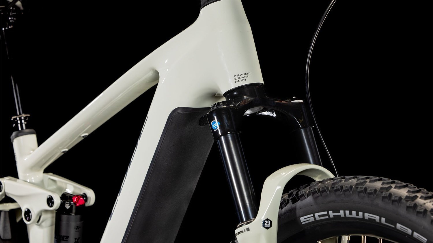 Das Trail-E-Bike namens Stereo Hybrid ONE22 Pro steckt voller genialer Details für top Performance an langen Tagen im Gelände. Dazu zählen sein ausgeklügeltes Viergelenker-Design, die Federgabel mit 120 mm Federweg samt Schutzblech-Montagepunkten und die Comfort Geometry. Weiter ein starker PowerTube Akku, der den Bosch CX Motor zuverlässig vorwärtstreibt, egal wohin und wie lang. On top hat CUBE eine neue Sattelklemme, eine Kettenführung und ein UDH Schaltauge verbaut – allesamt geniale Features, die das Leben auf den Trails dieser Welt um so vieles leichter machen. Clever: Dank der Size Split Option findest du garantiert die für dich perfekte Kombination aus Rahmen- und Laufradgröße.