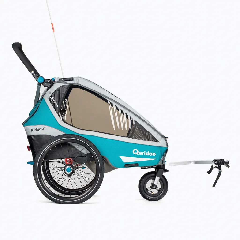 Der Qeridoo Kidgoo1 Petrol ist das Topmodell der Fahrradanhänger Qeridoo. Er bietet Deinem Kind hohen Komfort durch die bequemen Sitze und durch das neue Blattfeder-Dämpf-System. Die Belüftung im Innenraum hat Qeridoo auch verbessert. Den Kidgoo erhältst Du exklusiv nur noch im Fachhandel. Zudem gibt es auch noch ein Pro-Modell für den sportlichen Einsatz.